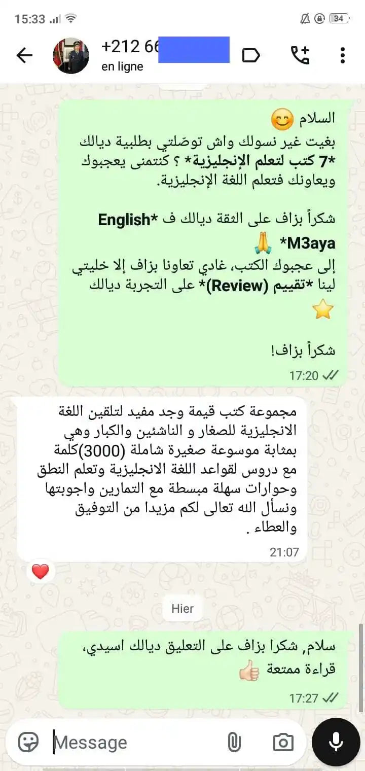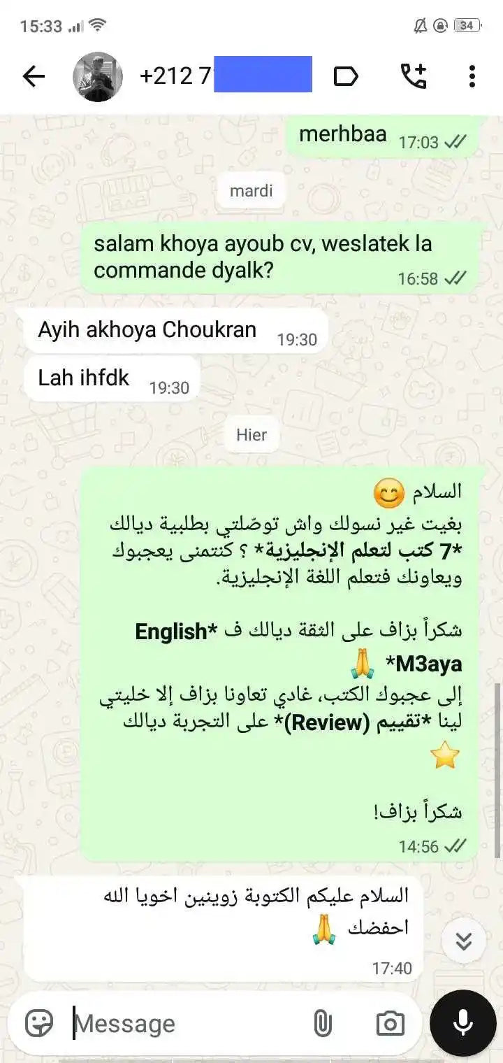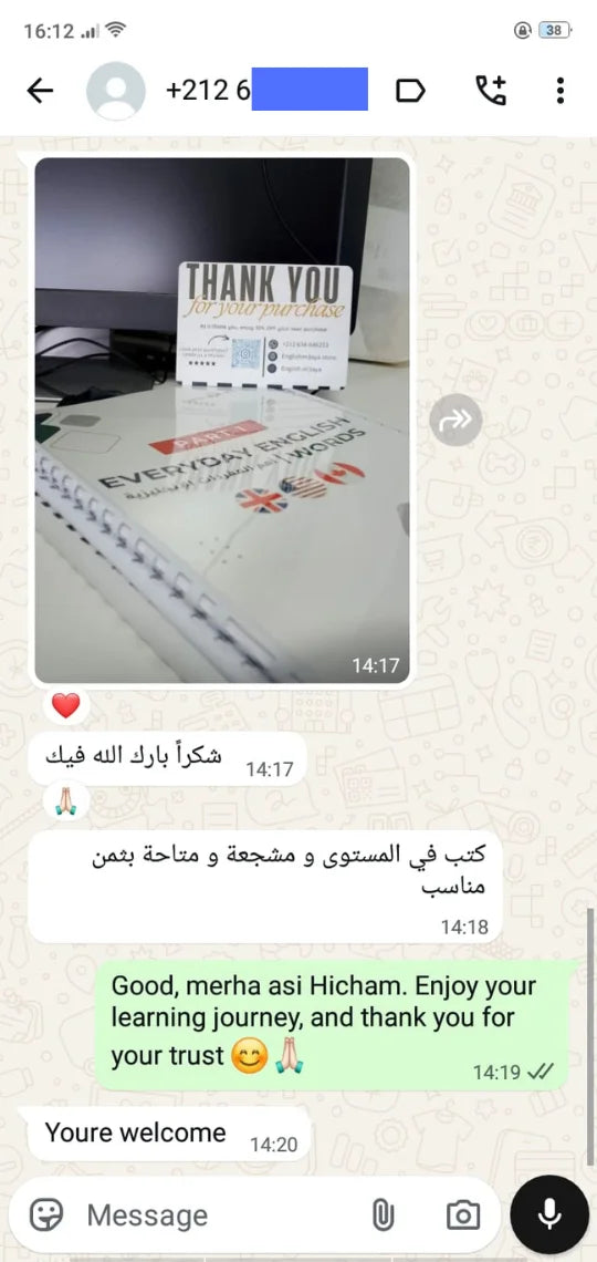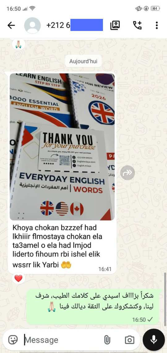 كتقرا الانجليزية ولكن ما كتفهمش ؟ كتخاف تهضر قدام الناس؟ حاولتي قبل وفشلتي؟ المشكل ماشي فيك، المشكل أنك ما عندكش نظام واضح يمشي بك خطوة بخطوة. مع هذا الباك غادي: تفهم القواعد بلا تعقيد، تقدر تدير حوارات حقيقية، توقف الخوف ديال التحدث، تزيد الفرص في الخدمة أو الدراسة، تولي واثق فالمقابلات والفرص الجديدة .